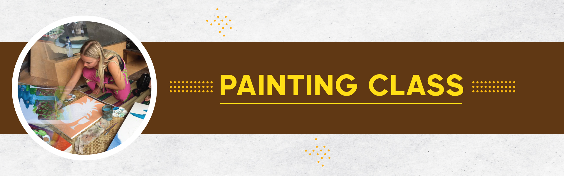 We provide all the goods, canvas, brushes, colors, etc. You get to create a beautiful painting and take it home.